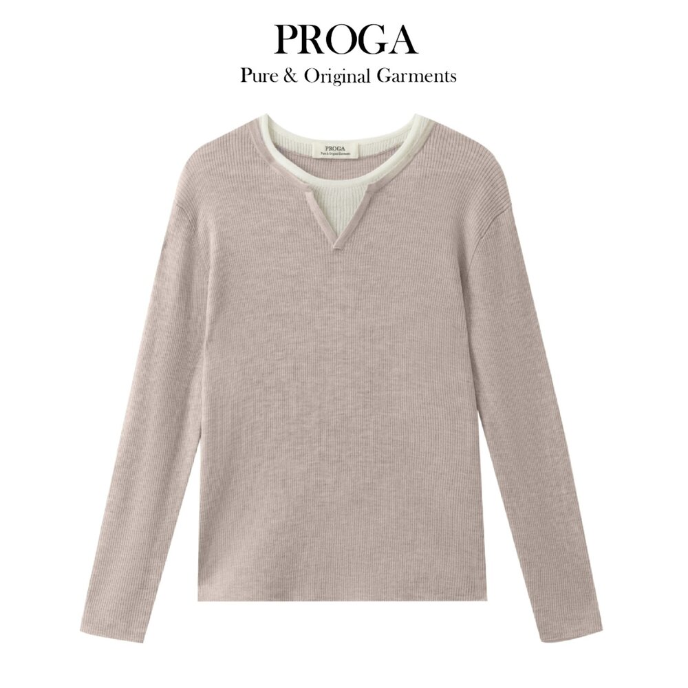 100%純美麗諾羊毛 毛衣 圓領 假兩件 坑條 羅紋 秋冬