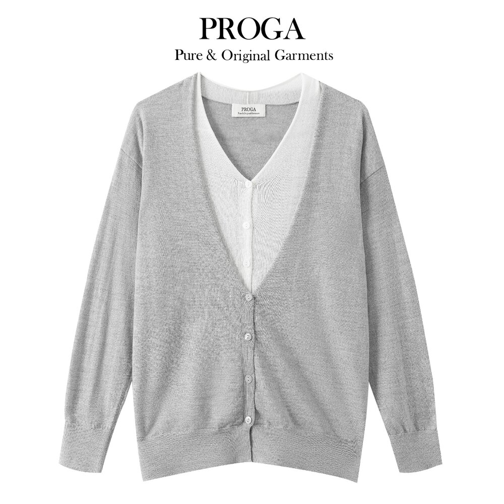 100%純美麗諾羊毛 毛衣 V領 開衫 假兩件 秋冬 開襟衫