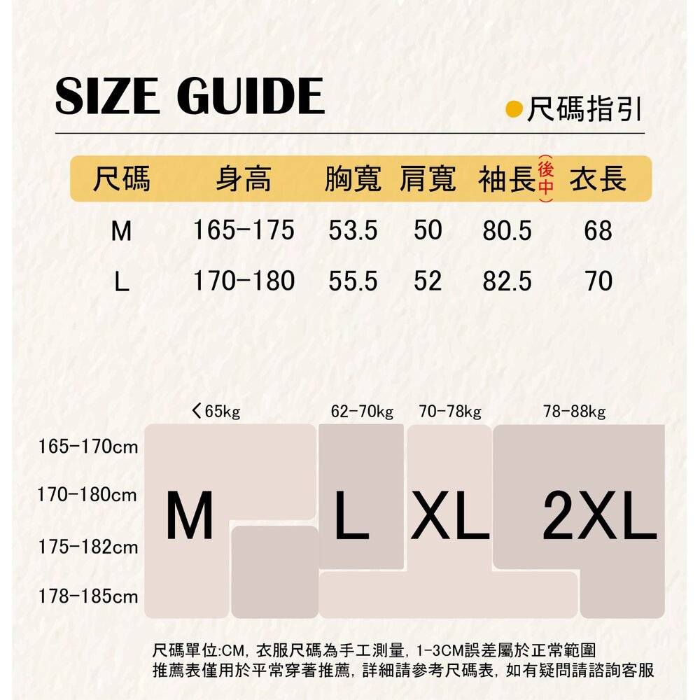 模特身高 183cm 體重 65kg 身穿 L 商品顏色一律以產品平拍圖為主