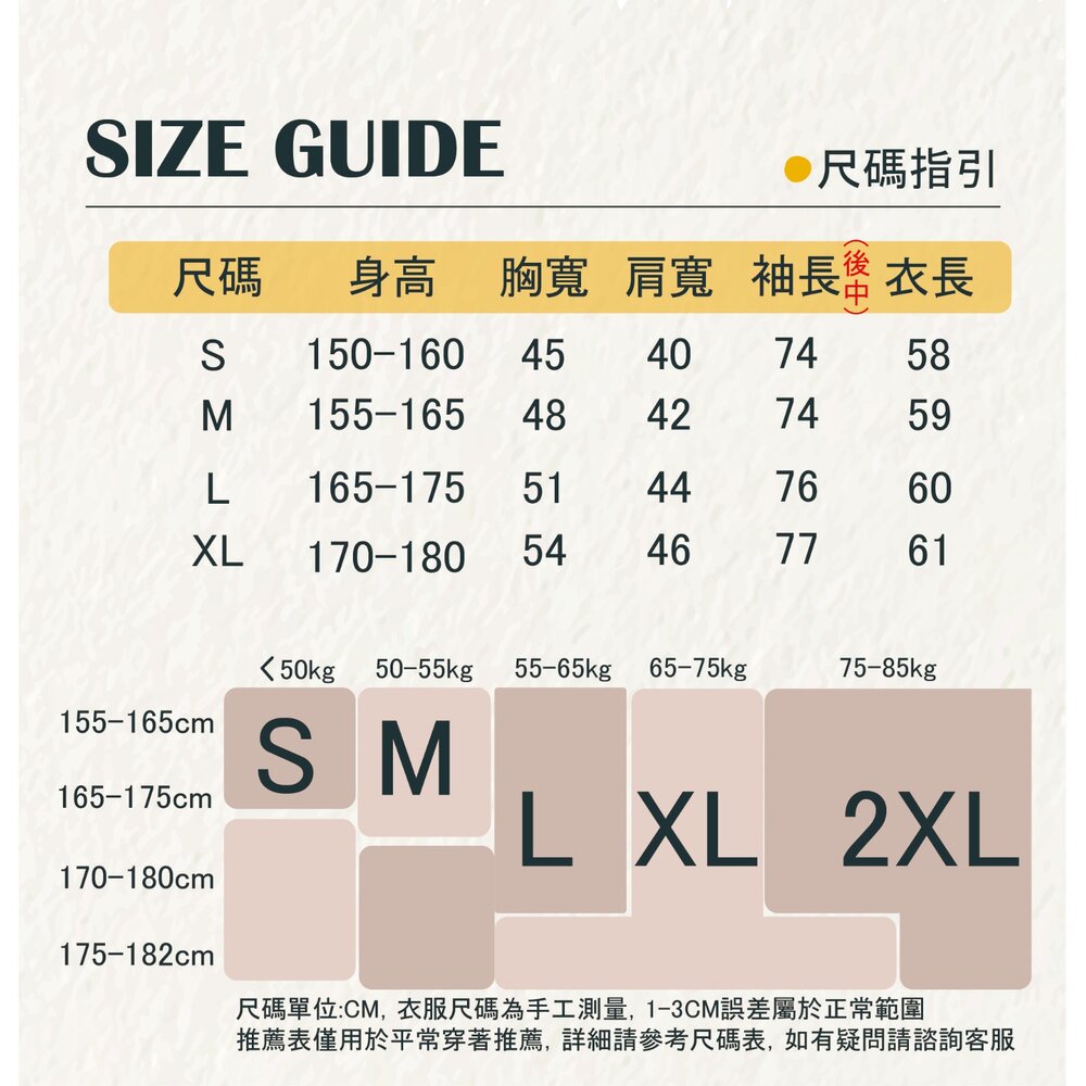 | 顏色 | S | M | L | XL |