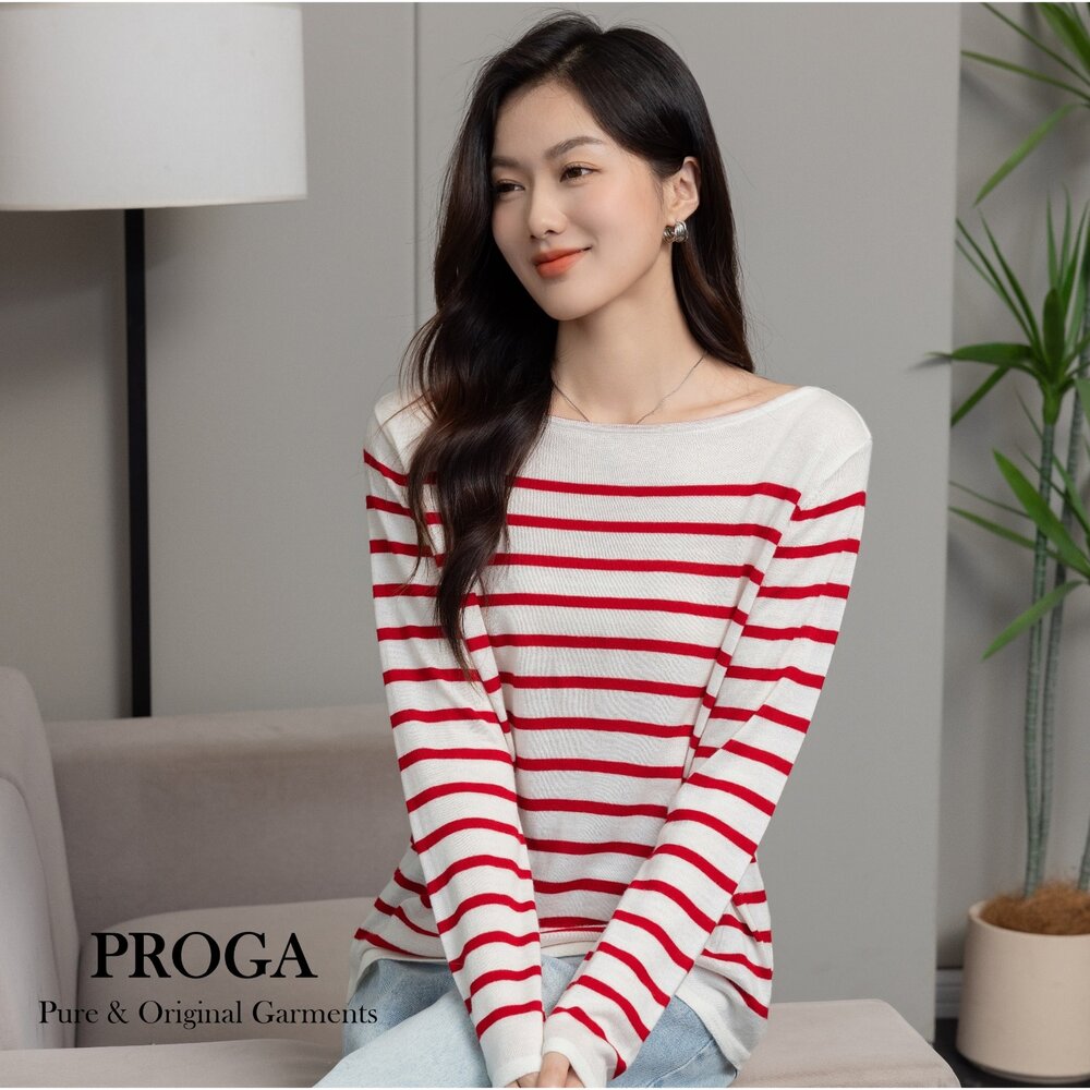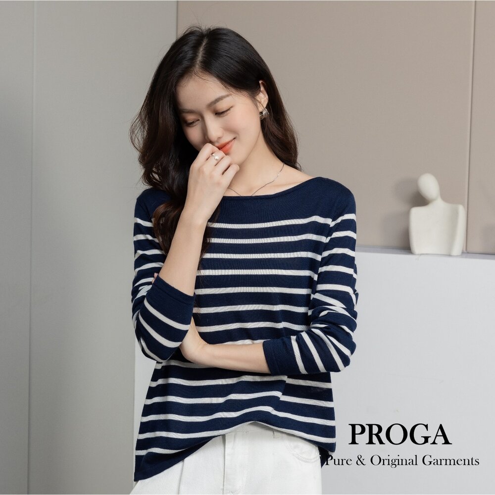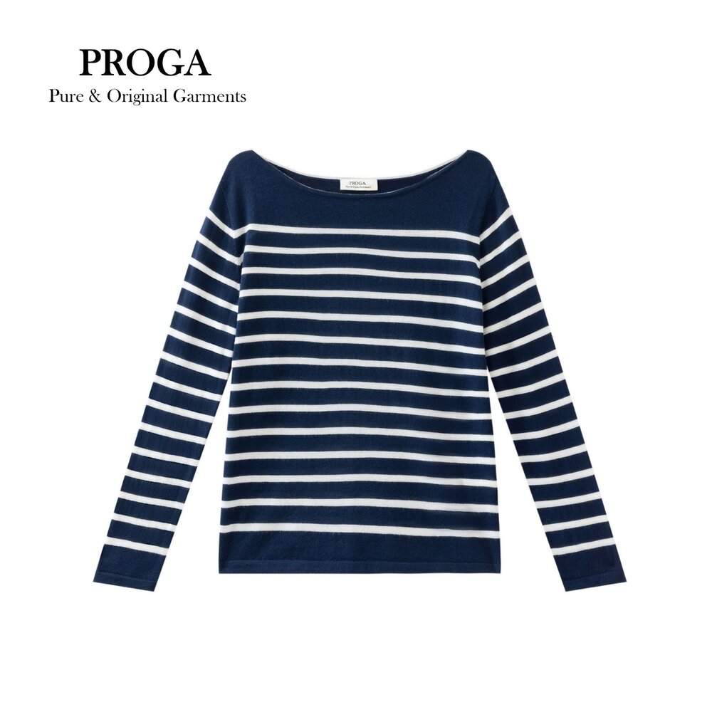 100%純美麗諾羊毛 毛衣 船領 條紋 秋冬