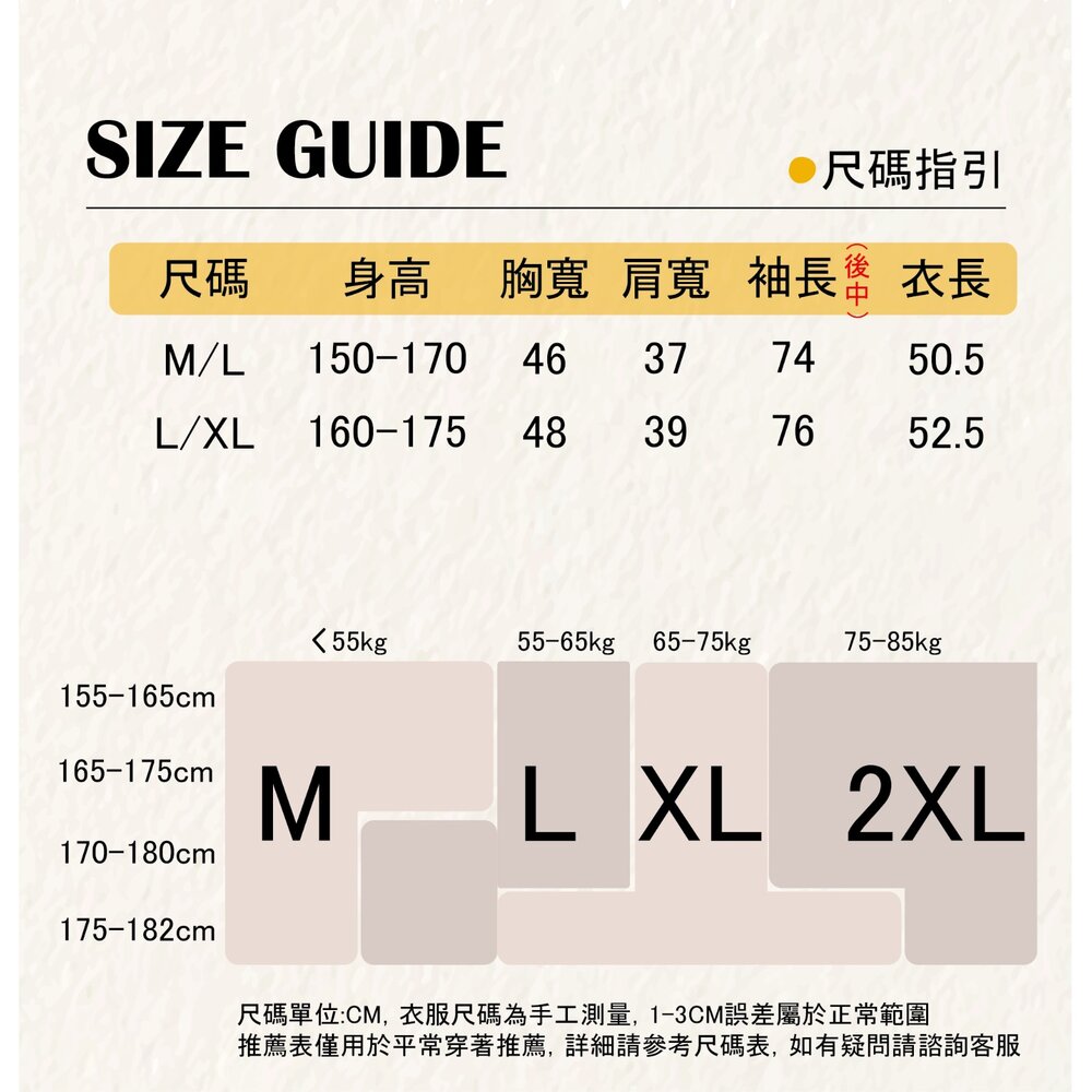 模特身高 167cm 體重 45kg 身穿 M/L 商品顏色一律以產品平拍圖為主