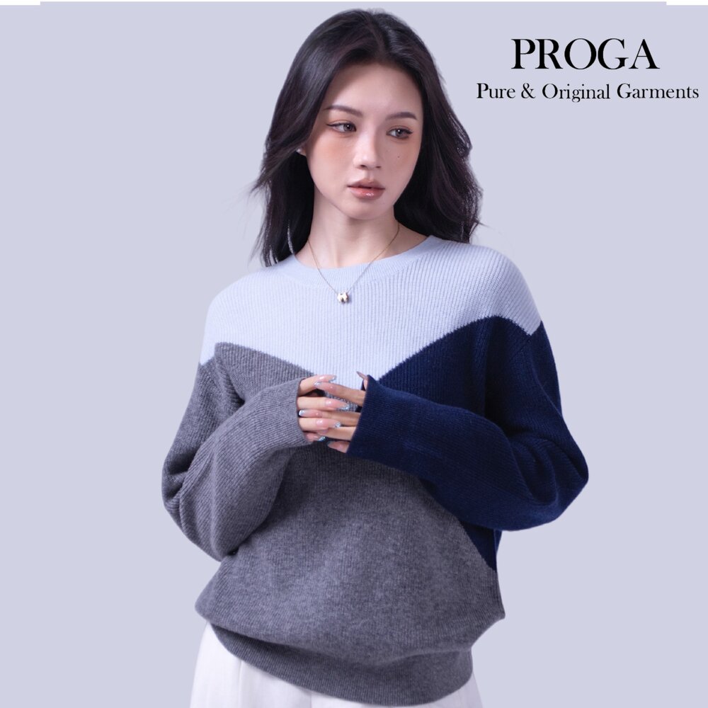 美麗諾羊毛 毛衣 圓領 秋冬 cashmere 喀什米爾 克什米爾 羊絨 簡約幾何美學 色塊拼接