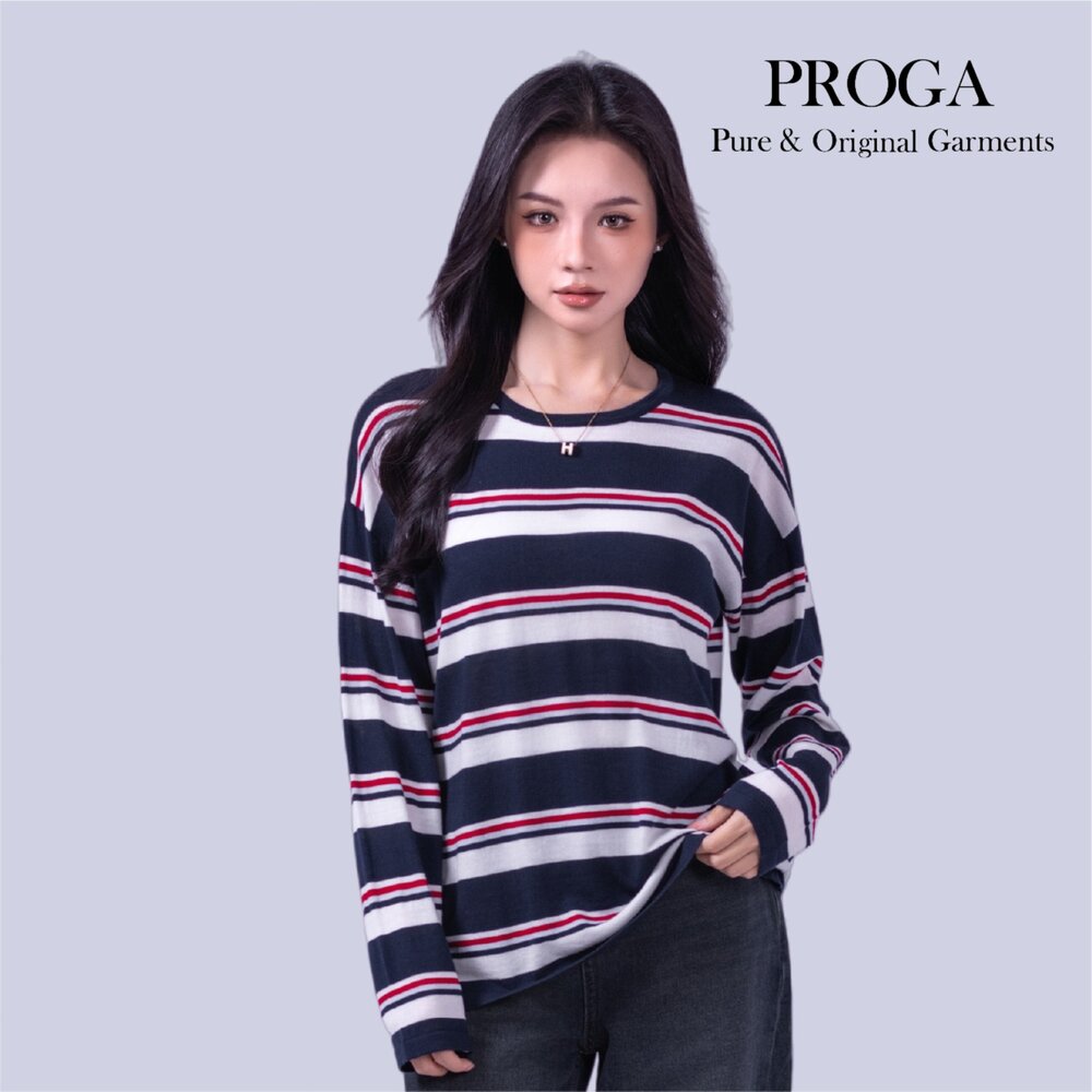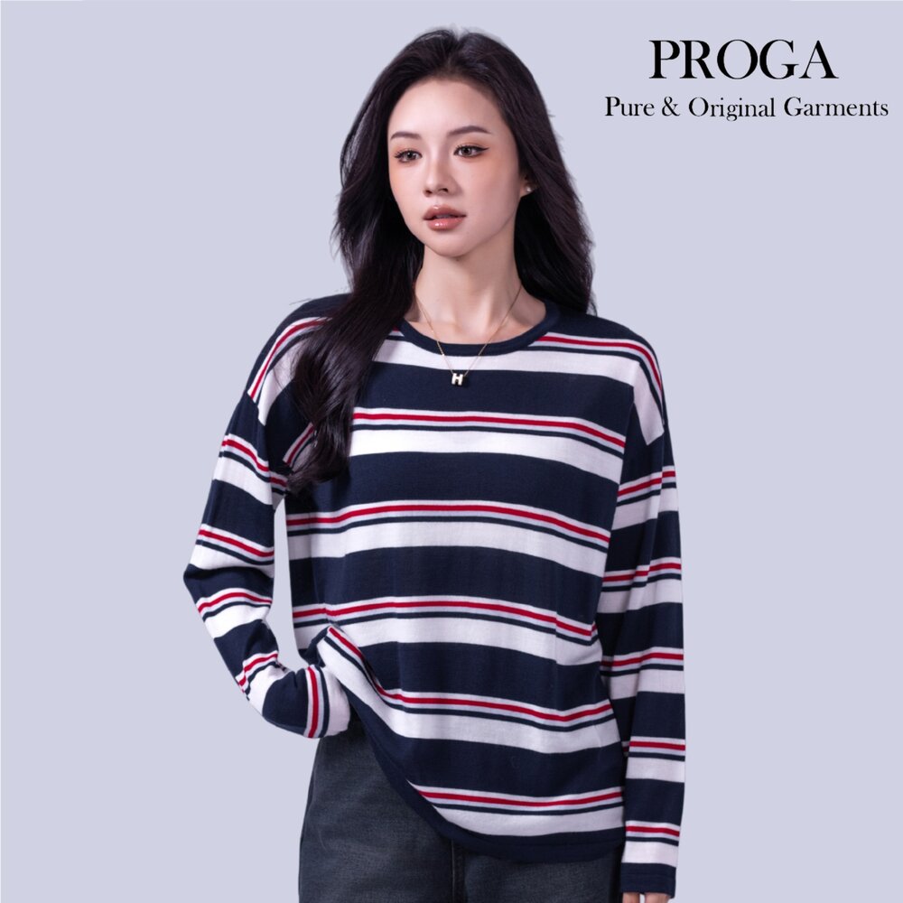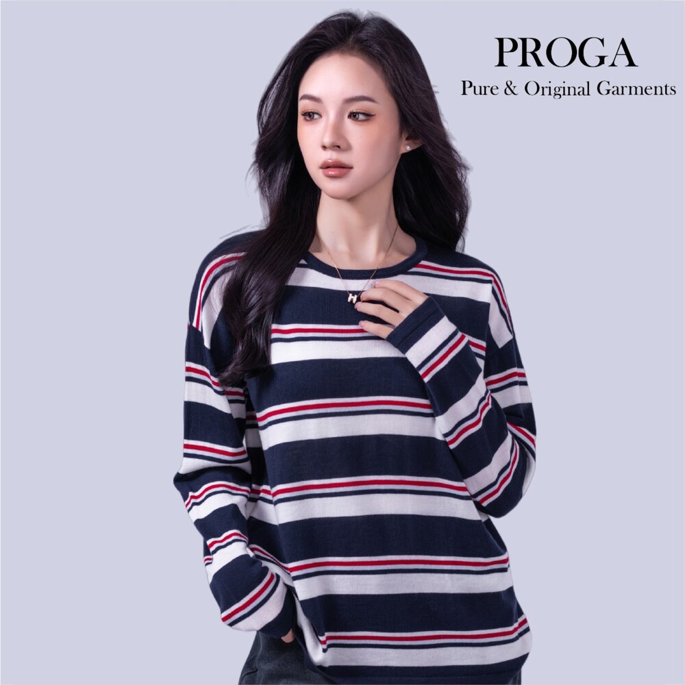 100%純美麗諾羊毛 毛衣 秋冬 冬天 日系 上衣 圓領 橫條紋