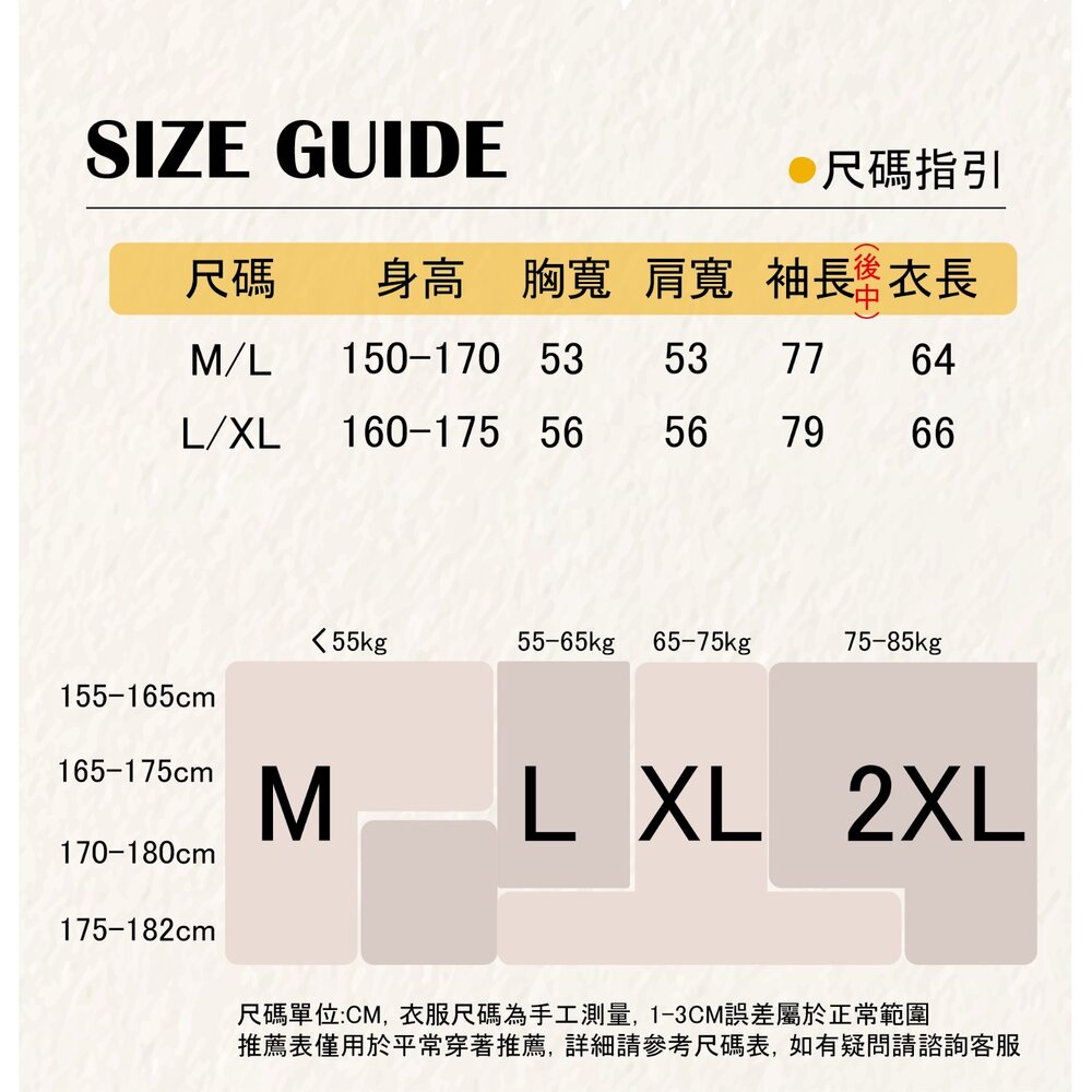 模特身高 167cm 體重 46kg 身穿 M/L 商品顏色一律以產品平拍圖為主