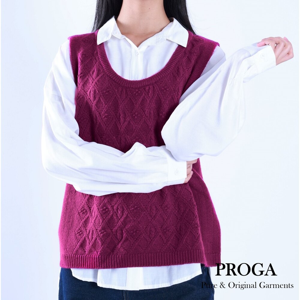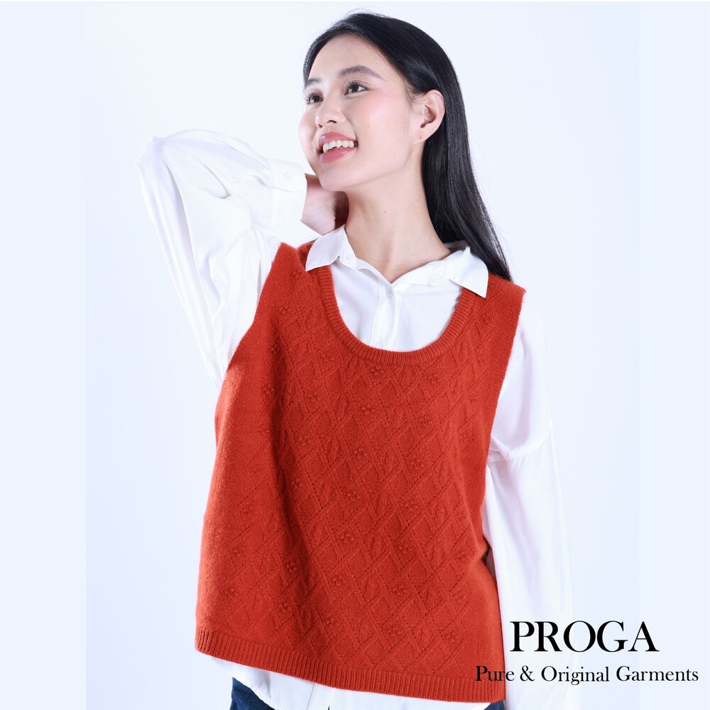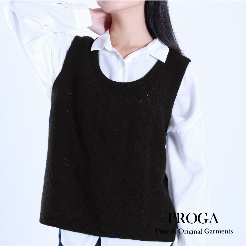 美麗諾羊毛 毛衣 秋冬 cashmere 喀什米爾 克什米爾 羊絨 層次穿搭 韓系休閒 提花 背心 無袖 菱格立體提花 柔軟親膚 高質感 透氣保暖