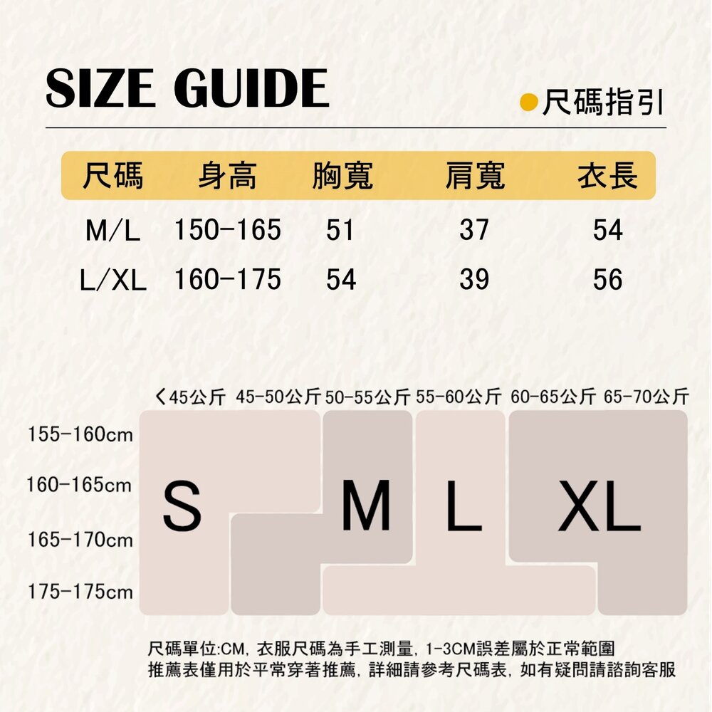 模特身高 167cm 體重 46kg 身穿 M/L 商品顏色一律以產品平拍圖為主