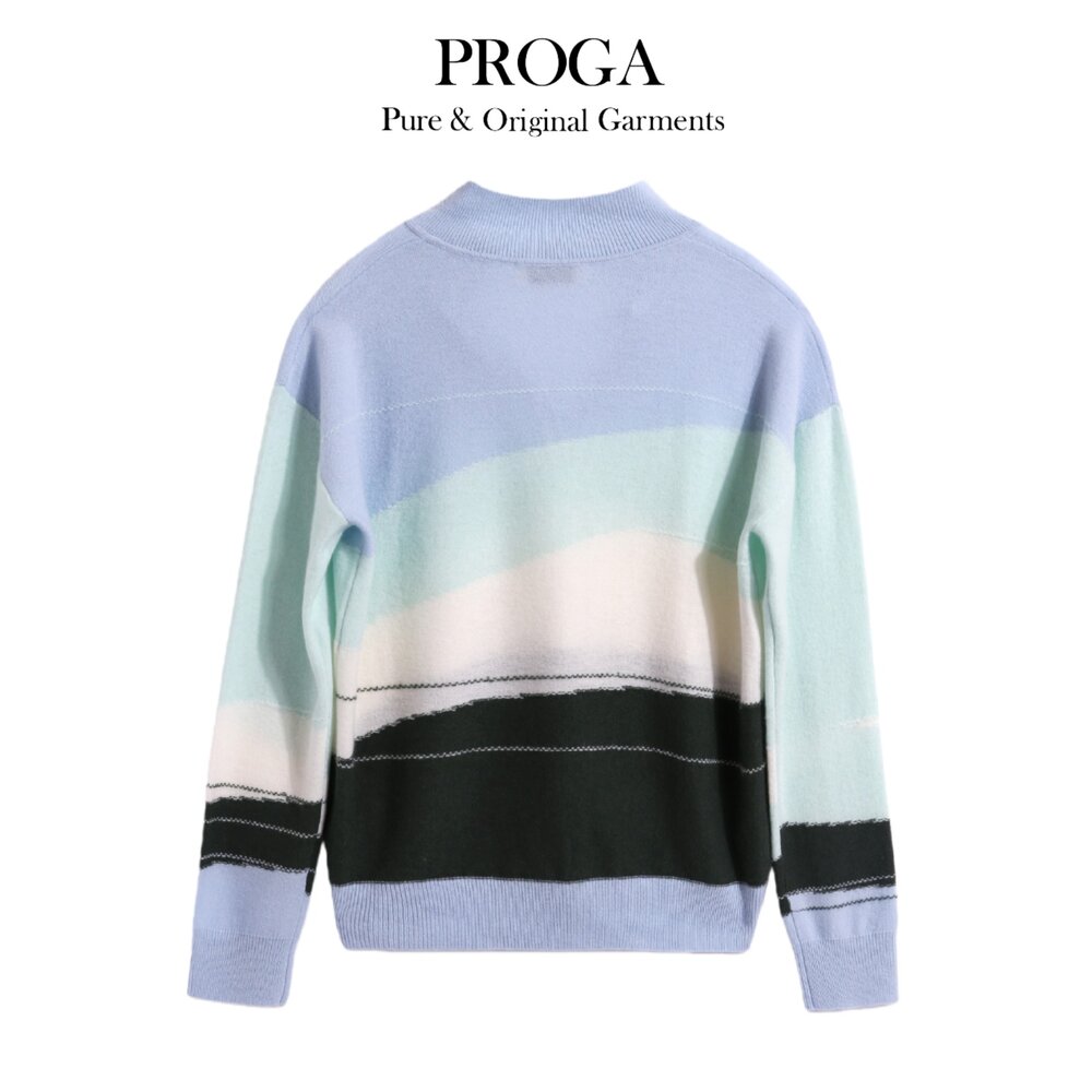 美麗諾羊毛 毛衣 圓領 秋冬 cashmere 喀什米爾 克什米爾 羊絨 花紋 細邊 抽象風景感配色 現代美學