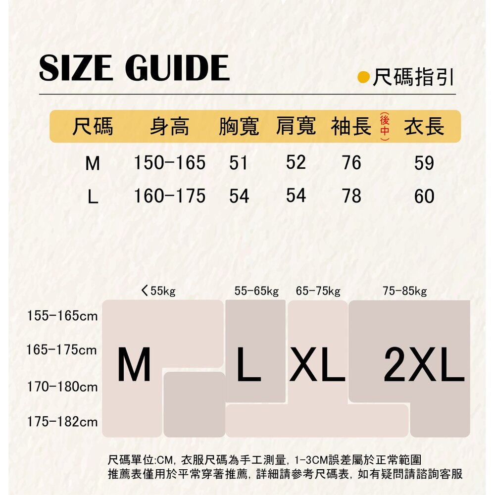 模特身高 165cm 體重 45kg 身穿 M/L 商品顏色一律以產品平拍圖為主